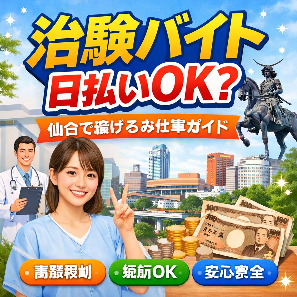 この記事では、仙台で治験バイトを探す方法、日払いの実態、安全性、注意点まで、初めての方にもわかりやすく解説します。